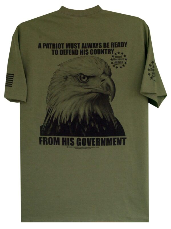 - Printed in 4 locations: Front left chest, back, and both sleeves, plus a printed neck label for comfort and features the Second Amendment Militia logo.