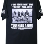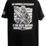 - Printed in 4 locations: Front left chest, back, and both sleeves, plus a printed neck label for comfort and features the Second Amendment Militia logo.