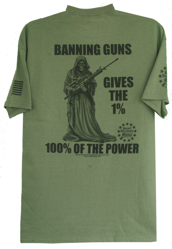 Be the first to review “Banning Guns Gives the 1%, 100% Of The Power T-Shirt” Cancel reply