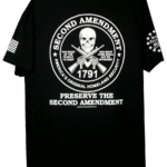 - Printed in 4 locations: Front Left Chest, Back, and Both Sleeves, (Plus a Printed Neck Label For Comfort and Features the Second Amendment Militia Logo)