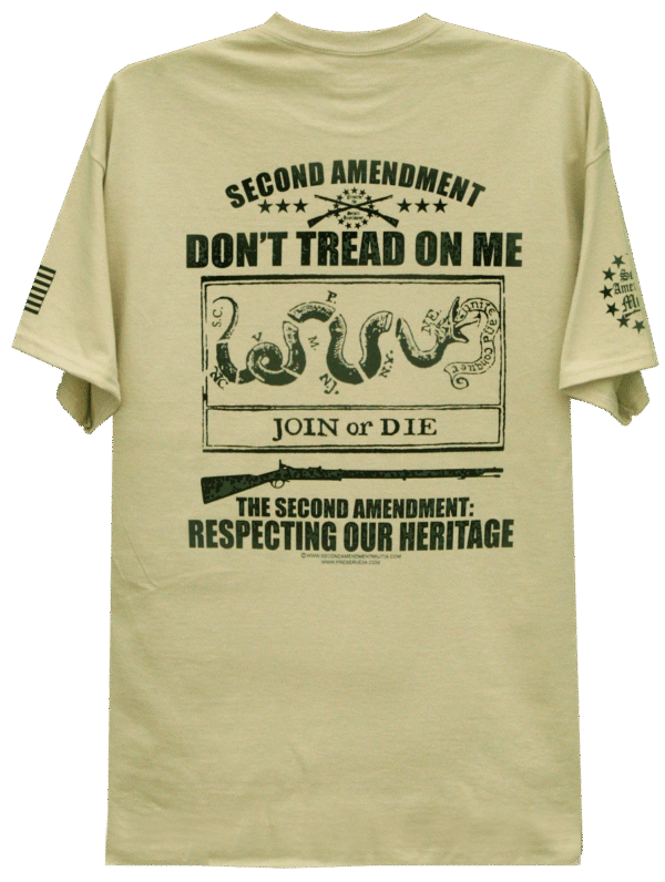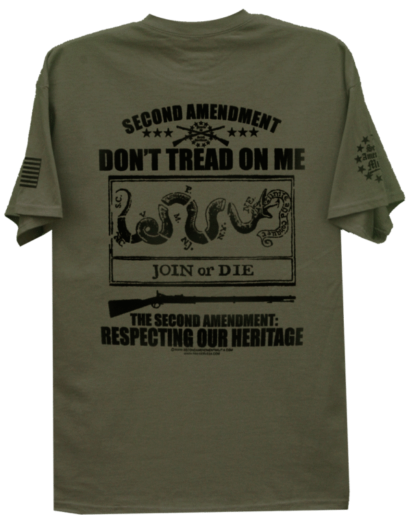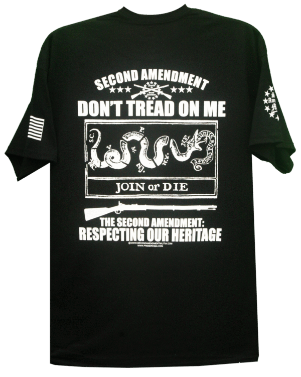 - Printed in Four Locations: Front, Back, and Both Sleeves, plus there is a printed neck tag for comfort which features the Second Amendment Militia Logo..