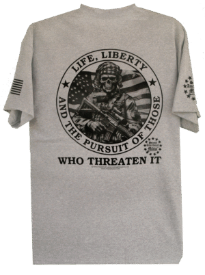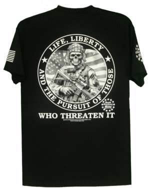 - PRINTED IN FOUR LOCATIONS: FRONT, BACK, AND BOTH SLEEVES, (PLUS A PRINTED NECK LABEL FOR COMFORT, FEATURING THE SECOND AMENDMENT MILITIA LOGO)