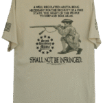 - PRINTED IN FOUR LOCATIONS: FRONT, BACK, AND BOTH SLEEVES, (PLUS A PRINTED NECK LABEL FOR COMFORT, FEATURING THE SECOND AMENDMENT MILITIA LOGO)