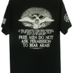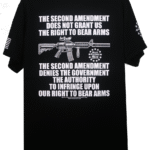 - Printed in 4 locations: Front left chest, back, and both sleeves, plus a printed neck label for comfort and features the Second Amendment Militia logo.