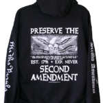 Don’t Plead the the Fifth, PLEAD THE SECOND!!! This Hoodie makes a great statement. Flex your Second Amendment rights! The graphic displays our original drawing of an AR-15 rifle, and it is paired with the quote: “I PLEAD THE SECOND”. That is followed by the entire wording of the Second Amendment, and below that it says proudly: “PRESERVE THE SECOND AMENDMENT”. Down the left sleeve is written: “WE THE PEOPLE”, and down the right sleeve is written: “PRESERVE THE SECOND AMENDMENT”. Any supporter of the Second Ammendment, Freedom, and Liberty is sure to love this Hoodie.