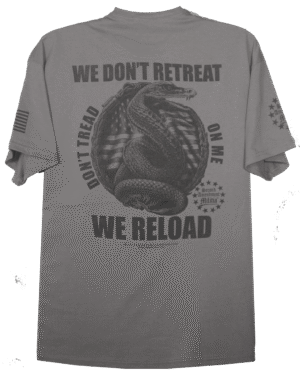 - PRINTED IN FOUR LOCATIONS: FRONT LEFT CHEST, BACK, AND BOTH SLEEVES (PLUS A PRINTED NECK LABEL FOR COMFORT, and Features THE SECOND AMENDMENT MILITIA LOGO)