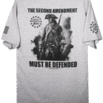 - PRINTED IN FOUR LOCATIONS: FRONT, BACK, AND BOTH SLEEVES, (PLUS A PRINTED NECK LABEL FOR COMFORT, FEATURING THE SECOND AMENDMENT MILITIA LOGO)