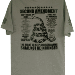 - Printed in 4 locations: Front left chest, back, and both sleeves, plus a printed neck label for comfort and features the Second Amendment Militia logo.