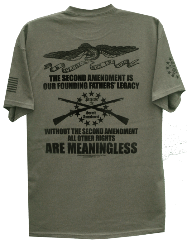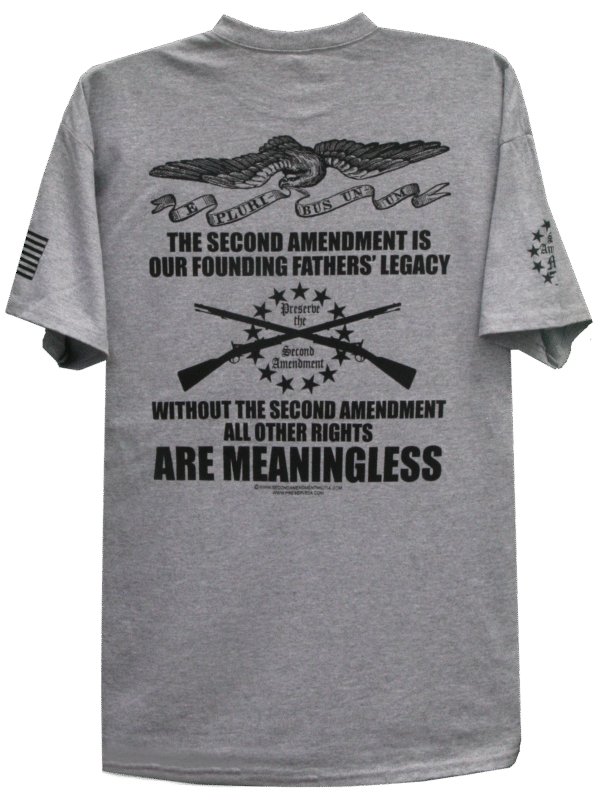 The Second Amendment is one of our most fundamental rights. Truly this is indeed a legacy from our founding fathers that we should be proud and grateful for. As the t-shirt states, “Without the Second Amendment, All Other Rights Are Meaningless”, and that is because if all else fails, that is the final, and only way, we can insure all of our other rights can be protected.