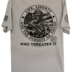 - Printed in 4 locations: Front left chest, back, and both sleeves, plus a printed neck label for comfort and features the Second Amendment Militia logo.